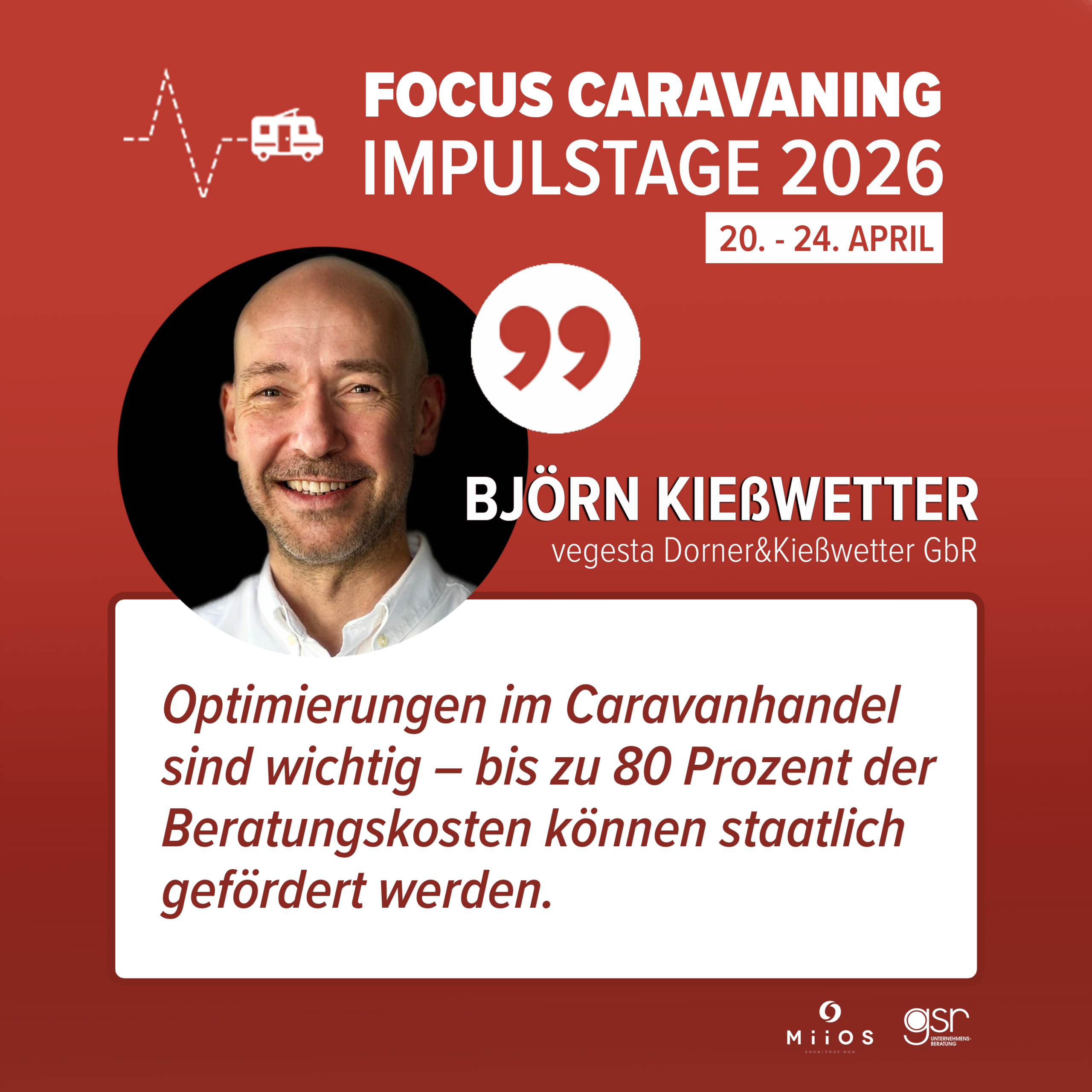 Viele Caravan-Händler investieren in die Optimierung ihres Geschäfts – oft ohne zu wissen, dass bis zu 50 – 80 % der dabei entstehenden Beratungskosten staatlich gefördert werden können. Programme für kleine und mittlere Unternehmen bieten attraktive Zuschüsse für strategische Beratungsprojekte. Doch welche Themen sind tatsächlich förderfähig und wie lässt sich diese Unterstützung konkret nutzen? Der Vortrag gibt einen Überblick über Fördermöglichkeiten und zeigt, welche Optimierungen im Caravanhandel aktuell besonders relevant sein können. ↓ Direkt zum Anmeldeformular skippen