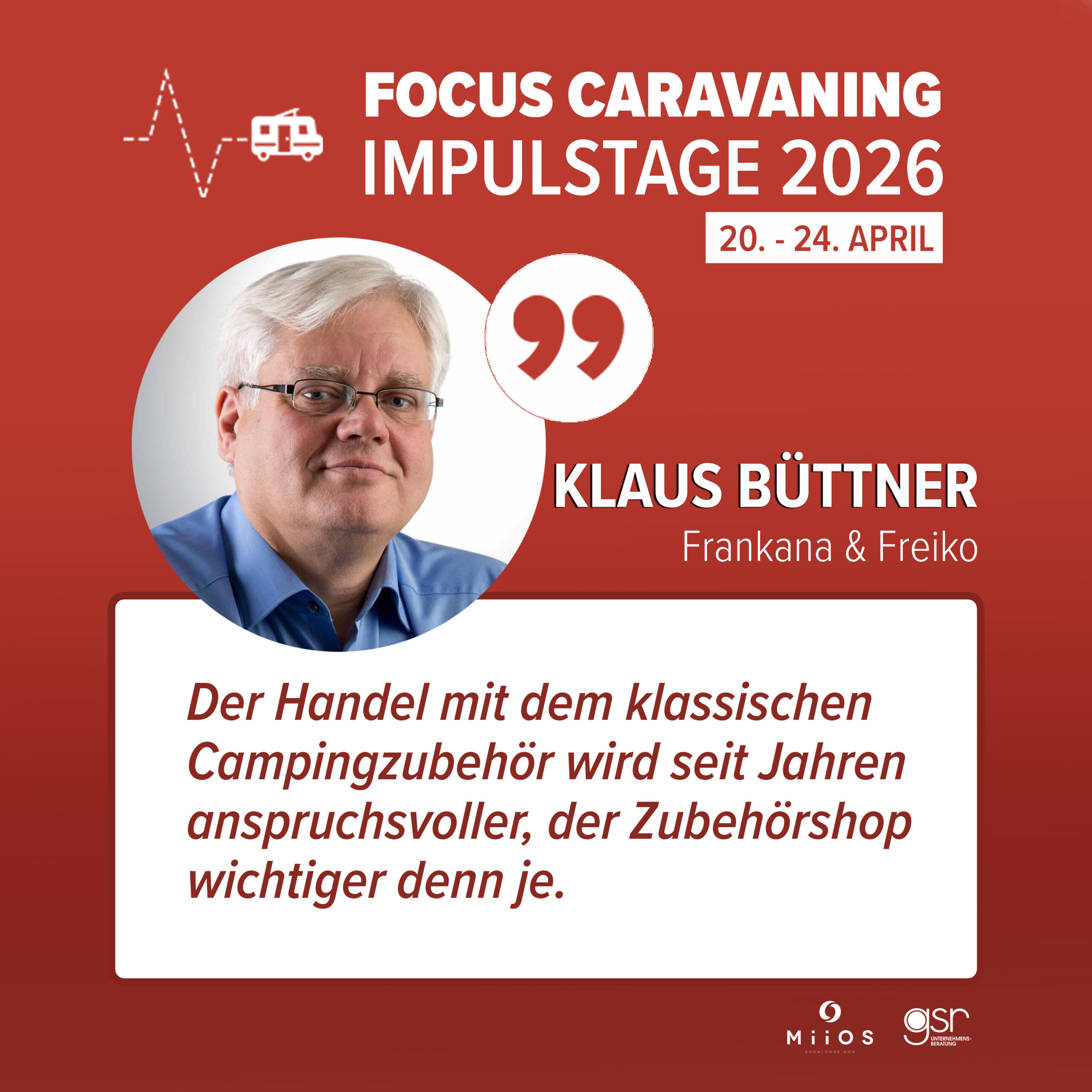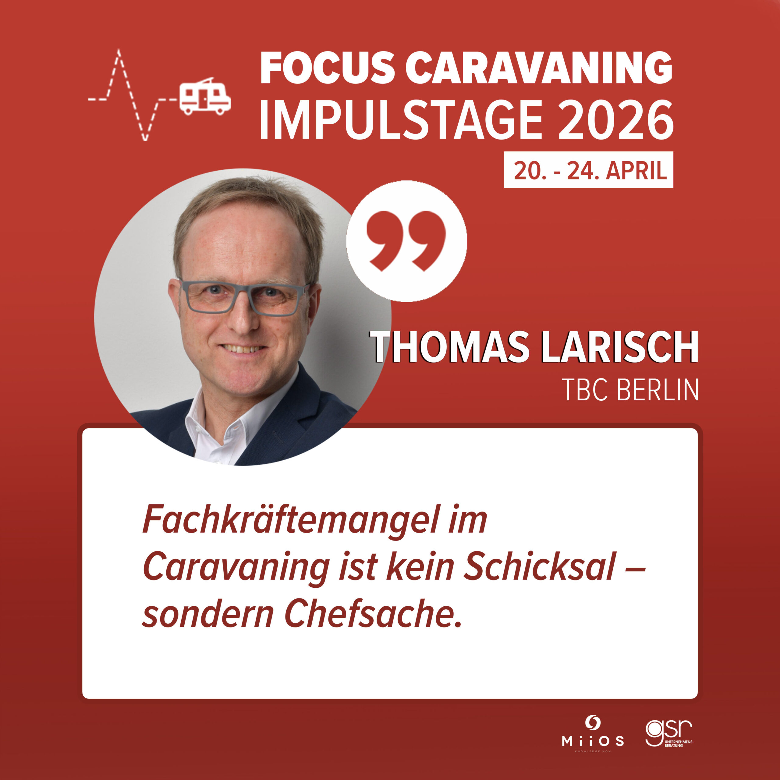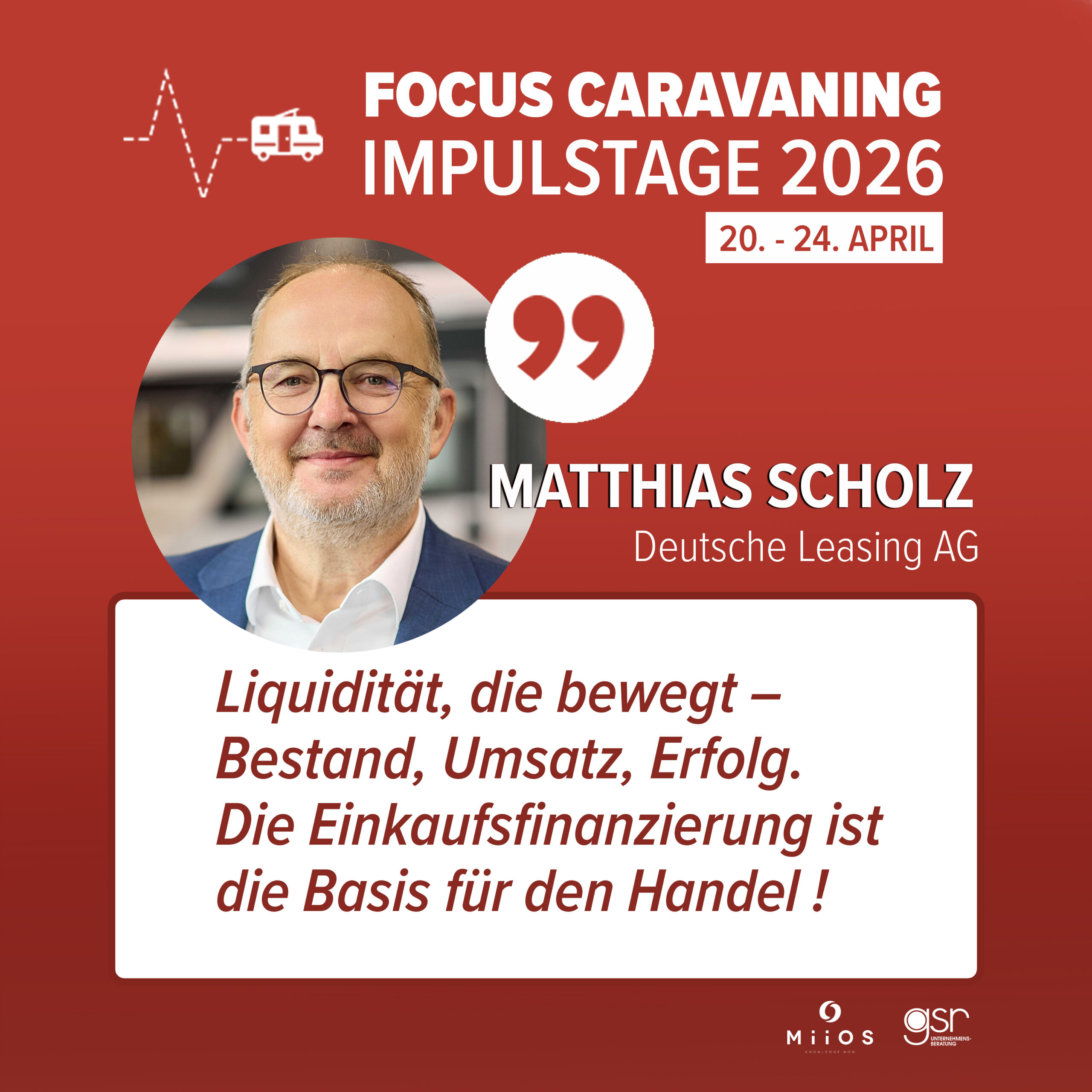 Zum Abschluss werden die Ergebnisse des Focus Caravaning Business Report Handel (B2B) durch Branchenexperten eingeordnet und diskutiert.Im Fokus stehen konkrete Implikationen für den Handel und die nächsten Schritte.Den Abschluss der Impulstage bildet ein gemeinsamer Ausblick auf die wichtigsten Handlungsfelder. Kompakt, einordnend und mit klarem Blick nach vorn.
