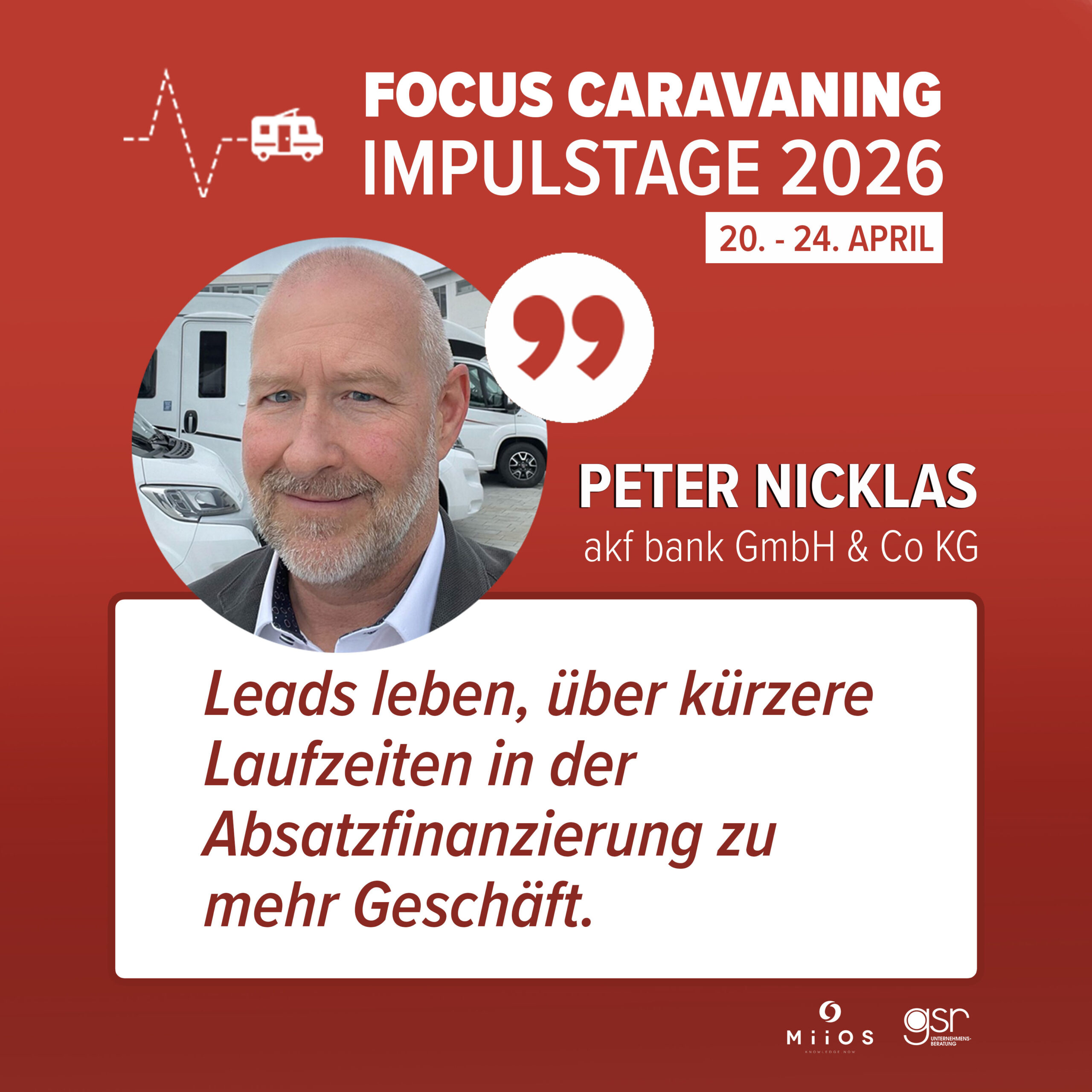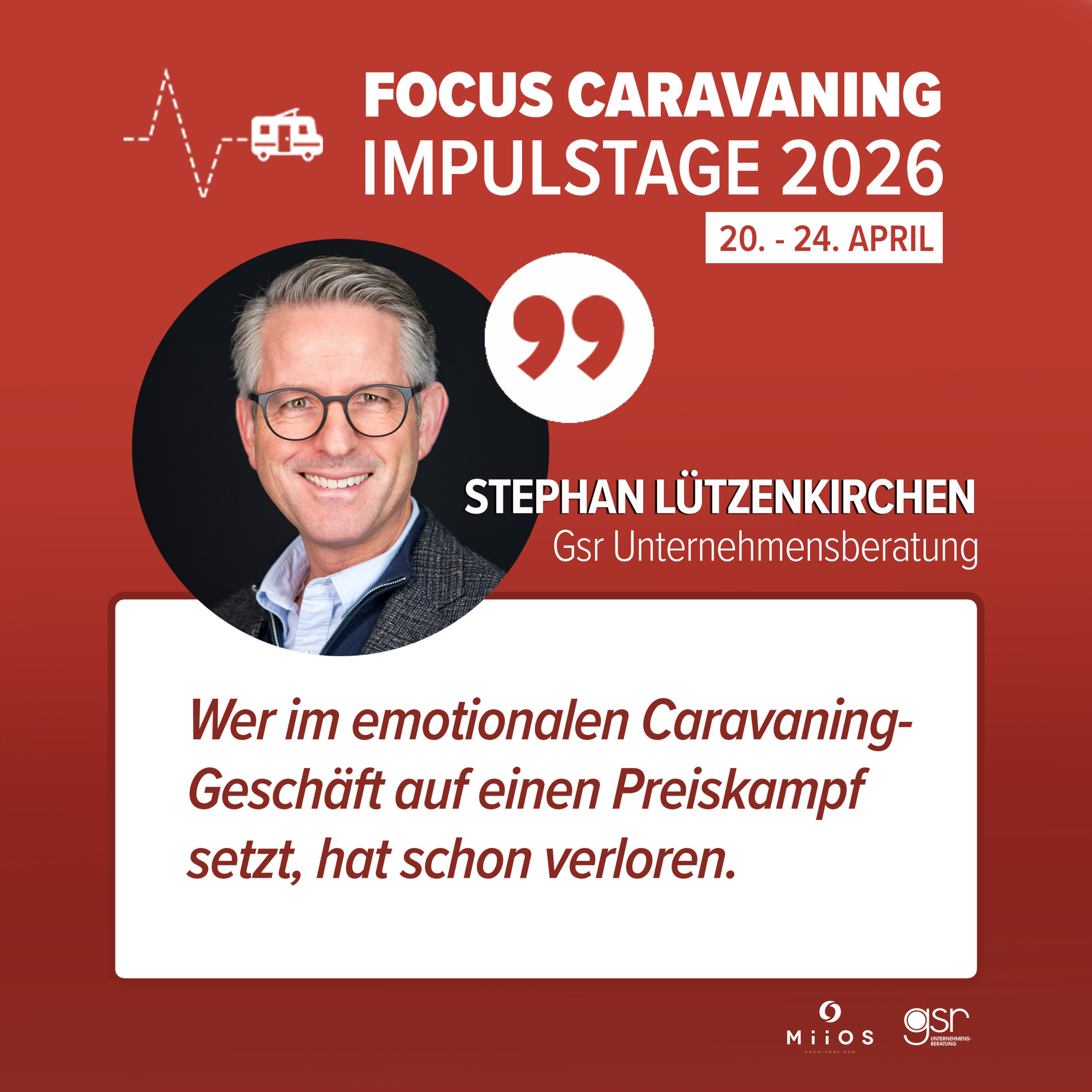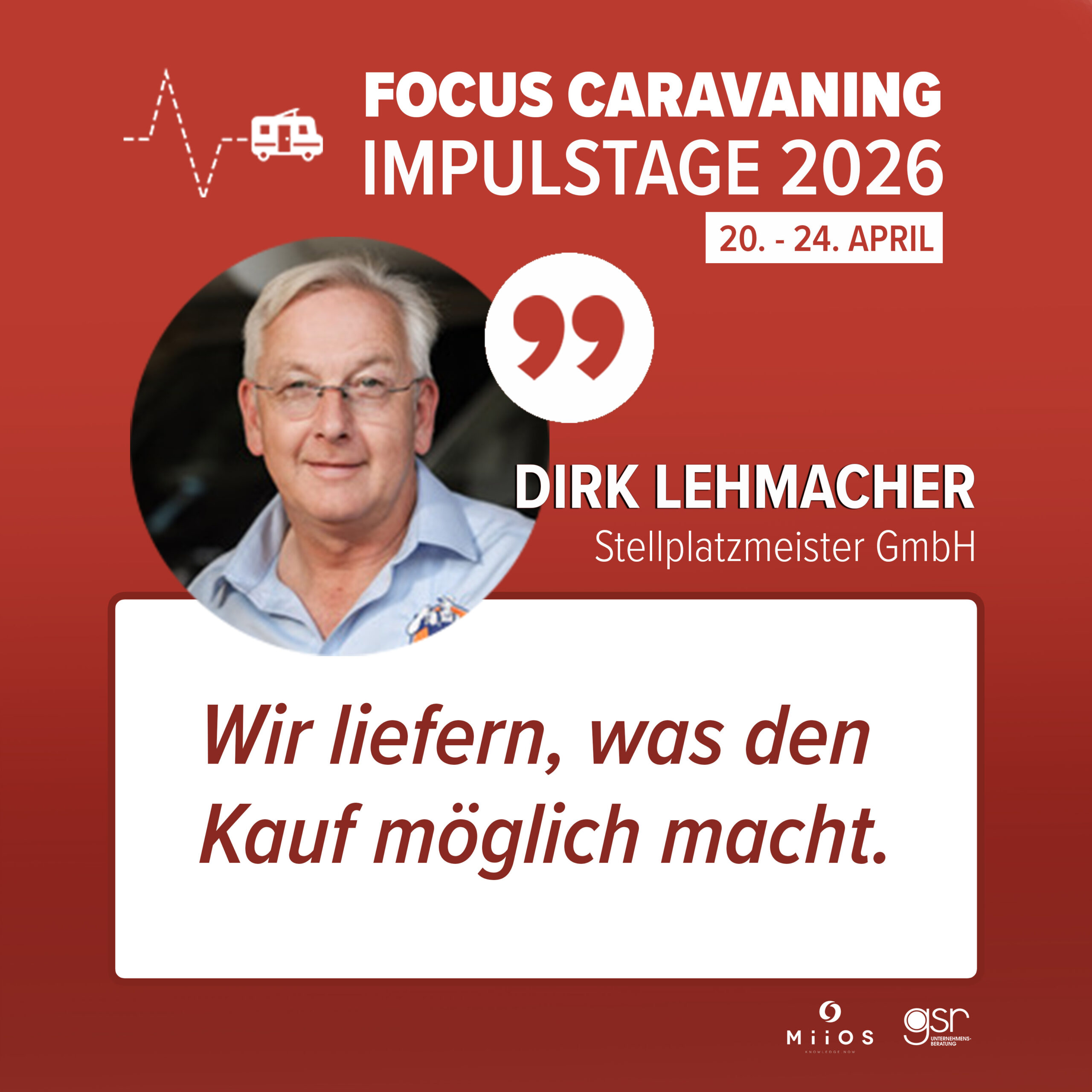 Zum Abschluss werden die Ergebnisse des Focus Caravaning Business Report Handel (B2B) durch Branchenexperten eingeordnet und diskutiert.Im Fokus stehen konkrete Implikationen für den Handel und die nächsten Schritte.Den Abschluss der Impulstage bildet ein gemeinsamer Ausblick auf die wichtigsten Handlungsfelder. Kompakt, einordnend und mit klarem Blick nach vorn.