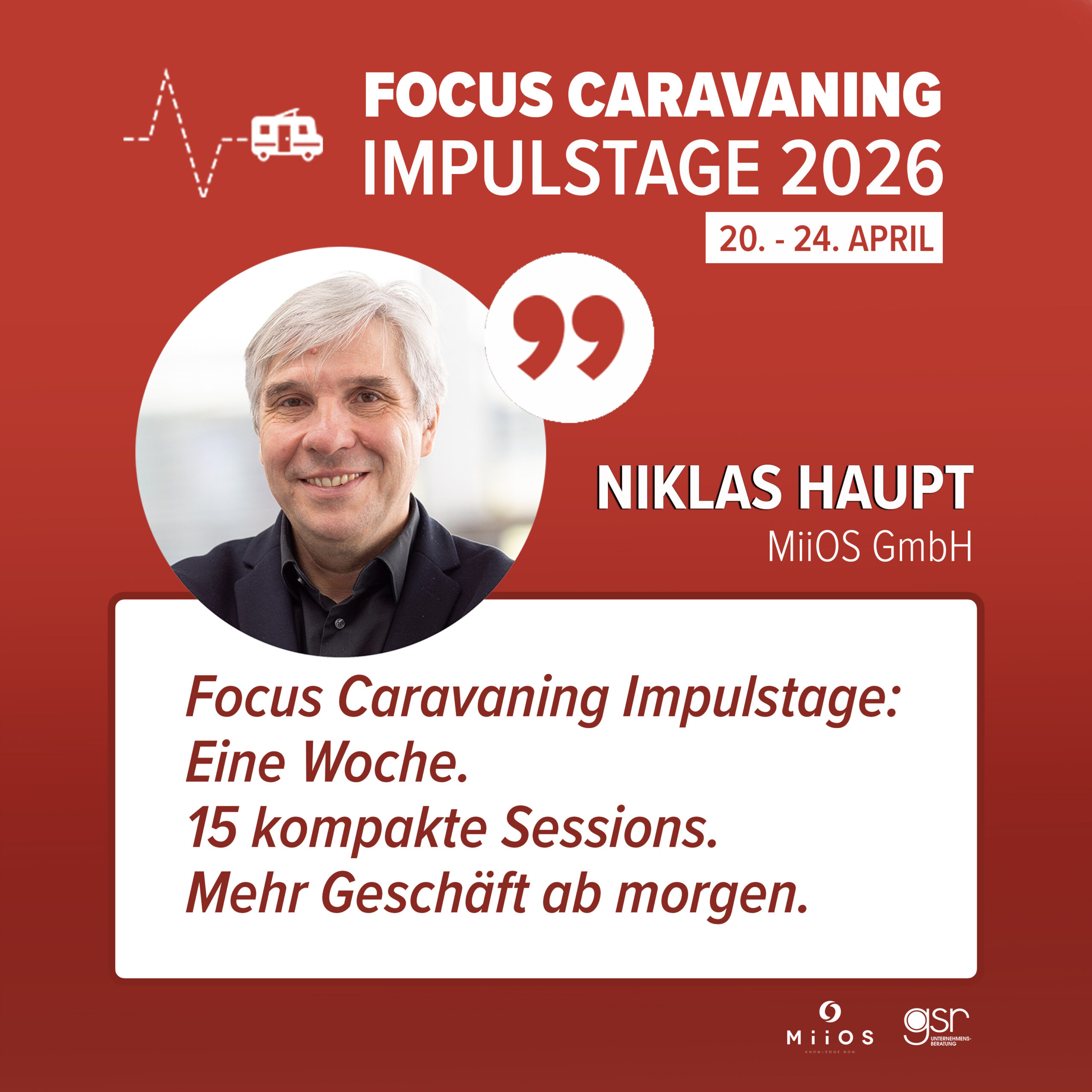 In kurzen, klar strukturierten Sessions stehen praxisnahe Impulse für den Caravaning-Markt im Mittelpunkt.