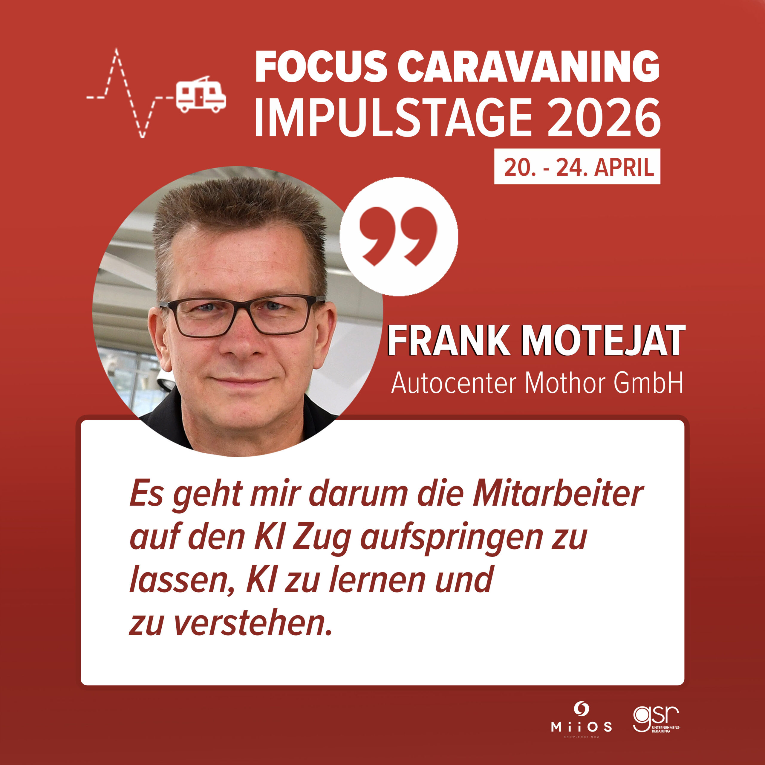Der Service macht den Unterschied: In dieser Session zeigen aktuelle Insights und Marktdaten aus der Focus Caravaning Endkundenstudie, wo Werkstätten heute stehen und welche Potenziale noch ungenutzt sind.Darauf aufbauend diskutieren wir, wie sich gezielt mehr Geschäft in der Werkstatt realisieren lässt.Im Fokus stehen konkrete Hebel, die direkt im Alltag umsetzbar sind.Kurz, kompakt und mit klarem Ziel: mehr Umsatz durch besseren Service. ↓ Direkt zum Anmeldeformular skippen